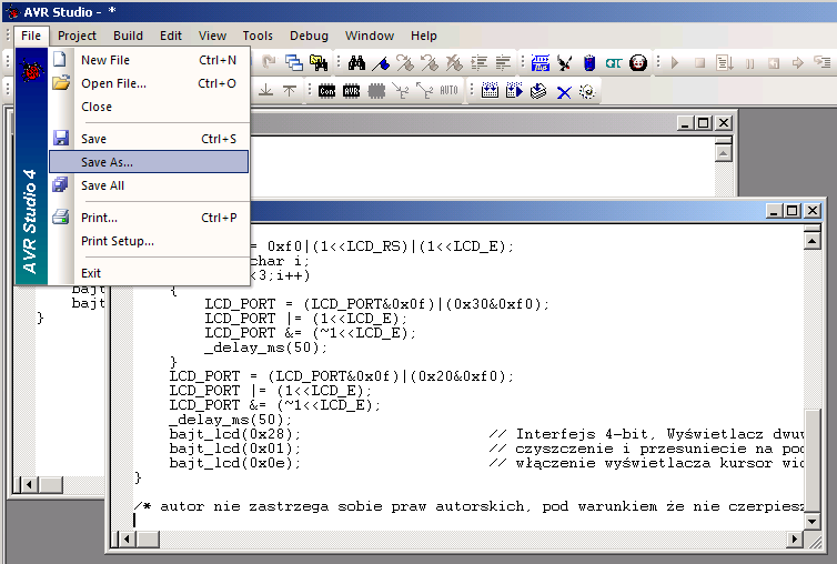 [/color] dla powyższych przykładów ciągów pokażę odpowiedniki tablic w języku C : nasz ciąg liczb z totolotka będzie wyglądał tak  ( 4, 23, 19, 36, 1, 7, /0 )  ... znacznik /0  jest znacznikiemm końca tablicy (ciągu) - jeżeli Atmega natrafi na niego to wie że skończył się ciąg i może zakończyć operację jego przetwarzania. Podobnie z ciągiem znakowym : jego elementy to kolejno :   ( t, o, _, j, e, s, t, _, c, i, ą, g, /0 ) . Można w języku C określić tablicę podobnie: Kod:
