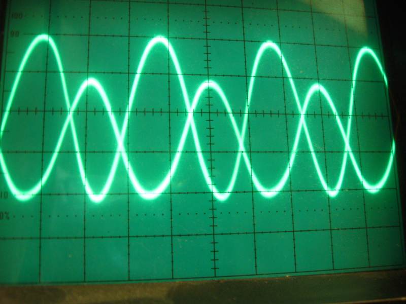 Zgodnie z tym schematem podpiąłem moje baluny do układu. R1=50 omów, R2=100 omów. Za pomocą oscyloskopu mierzyłem napięcia jakie się odkładają na rezystorach. Na pierwszy ogień poszedł balun prądowy czyli 6 zwojów rg58.