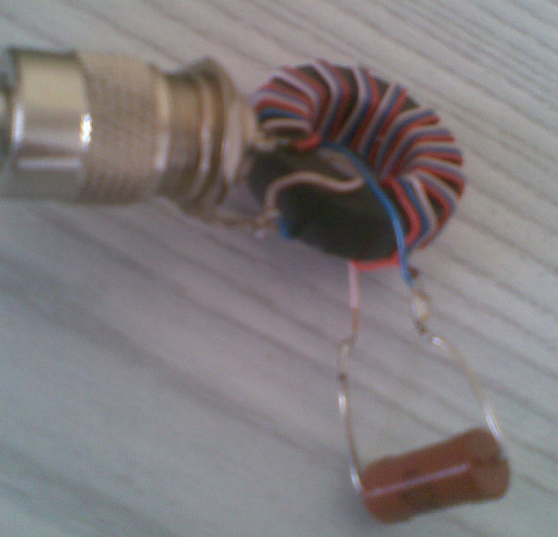 Balun numer dwa, to 6zwojów koncentryka z linią sprzęgającą -> 6 zw. drutu DNE. Taki balun jest bezapelacyjnie napięciowy: