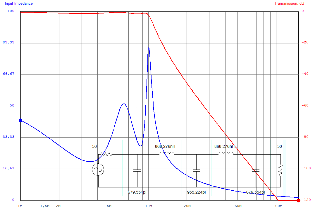 W załączniku przykład, jak zmienia się impedancja wejściowa prostego 5-polowego filtru czebyszewa, 1dB.