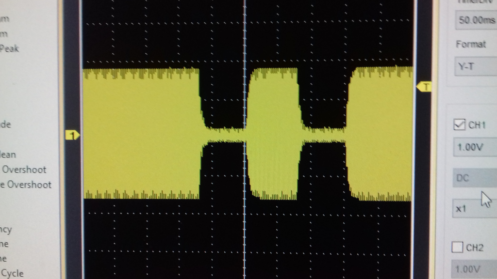 Pierwsze zdjęcie pokazuje właśnie kształt sygnału cw z kondensatorem 4.7uF na oscyloskopie gdzie widać zaokrąglenie startu i zakończenia sygnału a drugie zdjęcie miejsce na płytce gdzie kondensator został wlutowany (na zaciski C80). Nie mam zdjęcia z oscyloskopu bez kondensatora ale zapewniam, że początek i koniec impulsu są absolutnie prostokątne. Mój kiepski oscyloskop ma duży poziom "szumów własnych" dlatego w przerwach nie ma spadku sygnału do zera ale zapewniam, że w sygnale odbieranym nie słychać przecieku. Zastosowanie kondensatora 4.7uF nadaje sygnałowi cw pewnej "łagodności", znika stukot kluczowania bez formowania. Zastosowanie większych pojemności spowoduje tzw "dzwonienie" kluczowania co jest przez niektórych konstruktorów celem samym w sobie choć przy zbyt mocnym efekcie zmniejsza się istotnie zrozumiałość kluczowania.