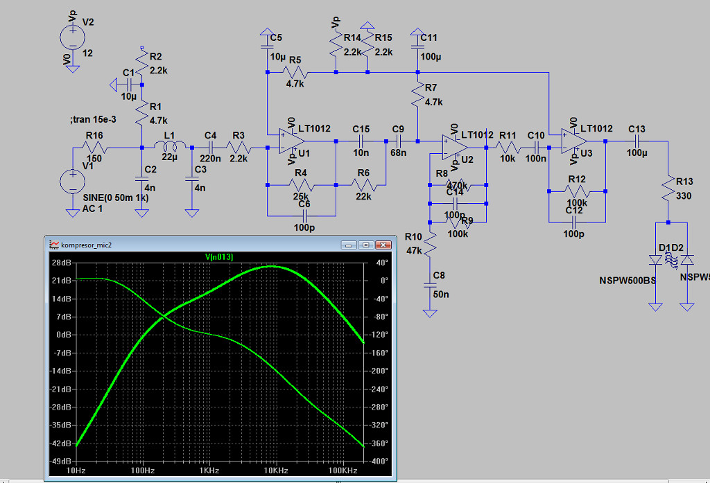 Na mój odsłuch, układ za dużo przenosi wysokich tonów. Praktycznie nie ma w samym kompresorze elementów ograniczających pasmo od góry (poza elementami ujemnego sprzężenia w op-ampach). Wrzuciłem go na symulator i faktycznie - pasmo sięga baardzo daleko, dużo dalej niż SSB. Niby późniejsze stopnie filtracji to wytną, ale - i tu pytanie do konstruktorów - czy nie spowoduje to wadliwego zadziałania kompresora w pewnych sytuacjach? Mikrofony elektretowe przenoszą wysoko, jakieś bardzo wysokie tony mogą nam "skompresować" sygnał użyteczny...