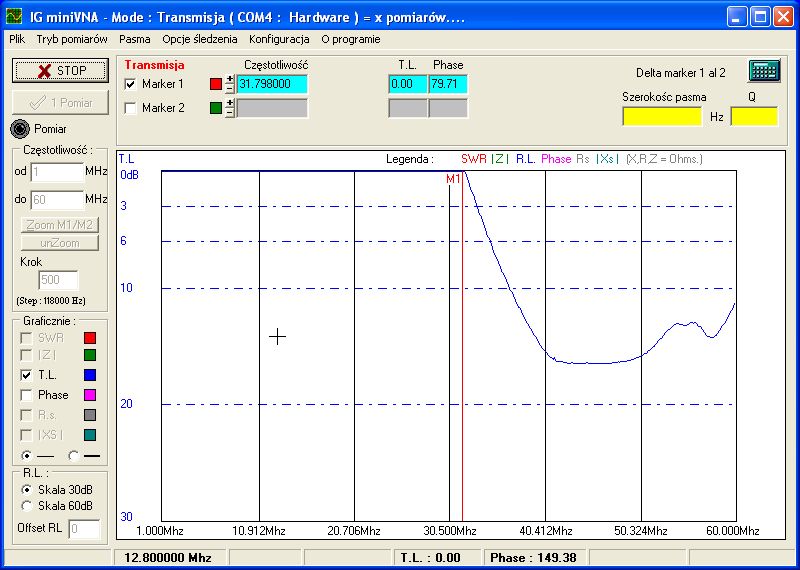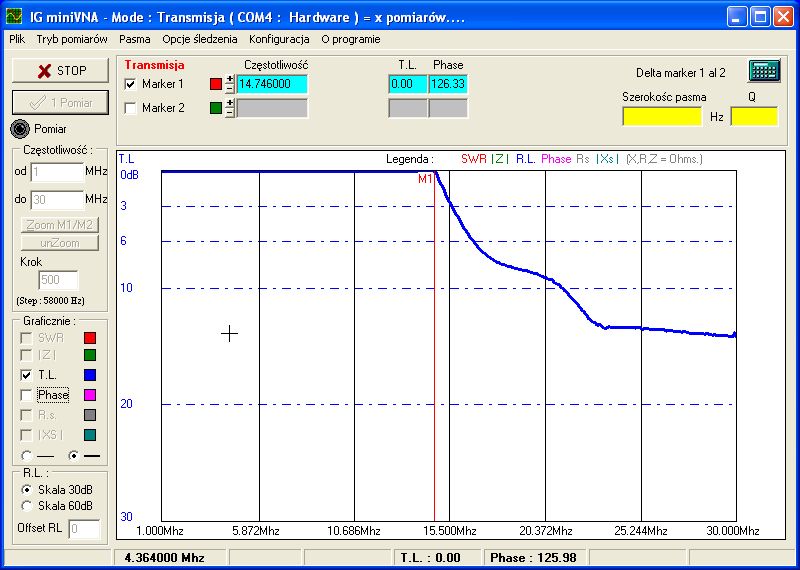 LPFy pewnie będą w miarę OK, bo tłumienie rośnie tam gdzie ma rosnąć. Ale na razie z tych pomiarów za wiele nie można wnioskować, bo nie widać co tak właściwie dzieje się w paśmie przepustowym. Chyba coś jest źle z kalibracją MAX-a albo ustawieniami programu. Wykres jest za wysoko - te płaskie kawałki rysowane na poziomie 0dB są w rzeczywistości poza zakresem, a w paśmie zaporowym powinno być więcej niż te kilkanaście dB tłumienia...