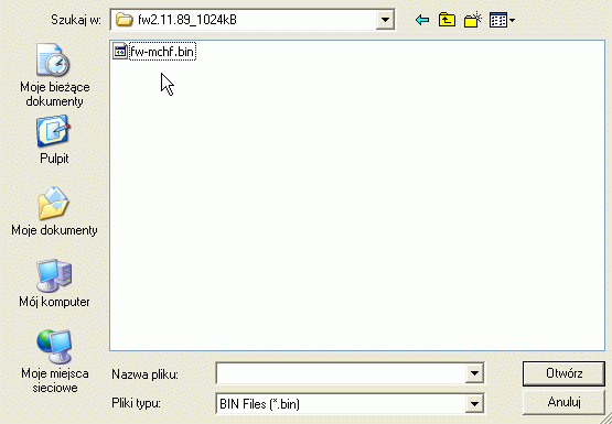 Wybrałem plik bl-mchf.dfu który ściągnąłem ze strony DF8OE jako najnowszą wersję.