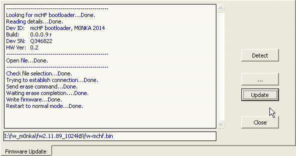 Próbuję zaktualizować firmware na moim mcHF, jak narazie bez powodzenia. Najwyraźniej coś źle robię, czy mogę prosić o korektę lub wskazanie w którym miejscu popełniam błąd. Oparłem się na YouTube video które pokazuje tą procedurę.