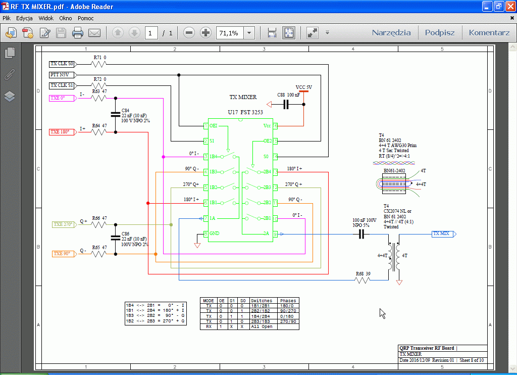 Widzę, że zrezygnowałeś z QSE bias mieszacza TX. Patrzę na zmianę C67 (i C68 domyślam się) z R=47 Ohm na C=100n. Faktycznie - po wyrzuceniu LMów zmiany jak najbardziej uzasadnione..