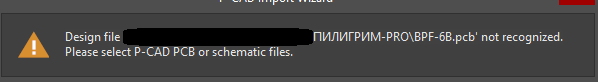 Udało się, ale trzeba wywalić cyrylicę z nazwy katalogu. Natomiast efekt importu jest taki sobie. Schematy jeszcze jakoś wyglądają, ale PCB się do niczego nie nadaje.