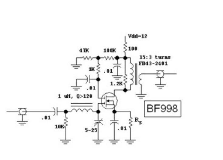 Układ działa jeśli użyję cewkę powietrzną około 1uH równolegle z rezystorem 1k2 i od drenu tranzystora przez kondensator kilka pF podłączę sygnał do NE602. Podobnie zrobiona cewka 1uH na rdzeniu FT37-43 nie działa (straty?).