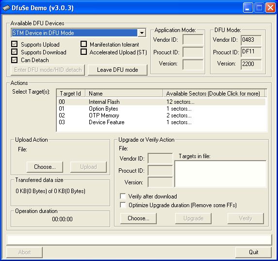 Zamienić firmware również należy przy wgrywaniu przez USB, bowiem bootloader nie ma parsowania plików w postaci *.hex