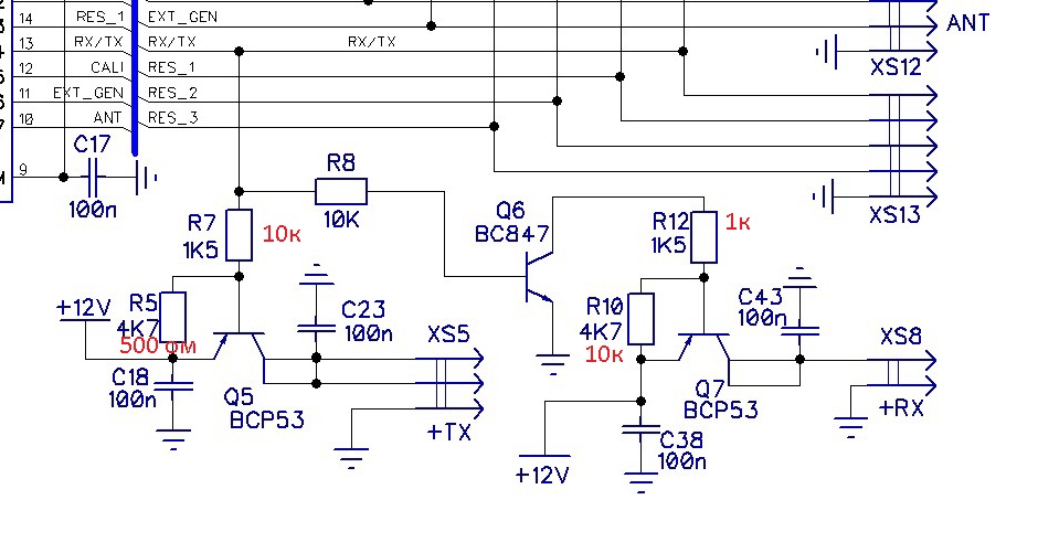 Andrzeju, układ o który pytasz jest przełącznikiem napięć zasilania RX/TX. Jeśli linia RX/TX jest w stanie wysokim i ma + 12V to na wyjściu XS8 wystąpi napięcie +12V, natomiast na wyjściu XS5 będzie 0V. Do poprawnej pracy tego układu ważne jest aby napięcie na linii RX/TX przy nadawaniu było poniżej 0,5V natomiast przy odbiorze prawie 12V aby nie przewodził tranzystor Q5. Zwiększanie rezystora R8 na 100 czy 200 kom nie jest dobrym rozwiązaniem. Proponuję pomiędzy bazę a emiter Q6 wstawić rezystor 10 kom aby wykonać dzielnik.tak jak Zbyszek zaproponował. Pozdrawiam.