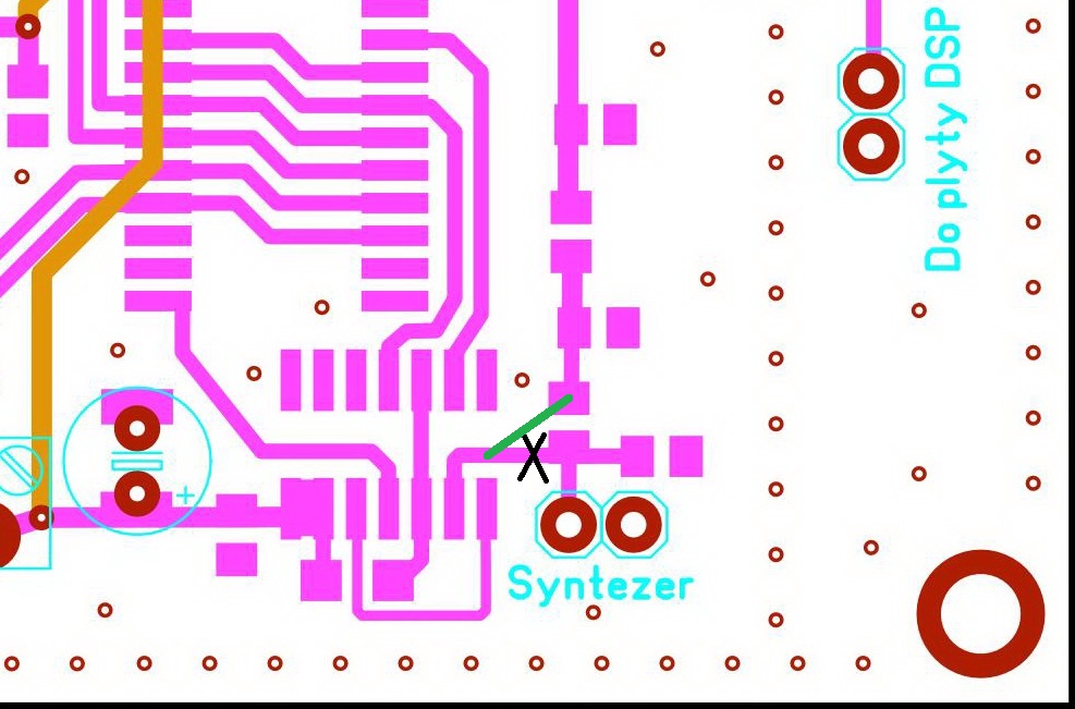Trafiłem na dość istotną niedokładność. Dotyczy to wersji 1, czerwonej, czteropłytkowej. A mianowicie sygnał DDSa bezpośrednio jest połączony z wejściem NANDa (pin9) z pominięciem polaryzacji. Przy małym sygnale DDSa NAND i klucze nie pracują. Po przeróbce jak w załączniku jest prawidłowo.