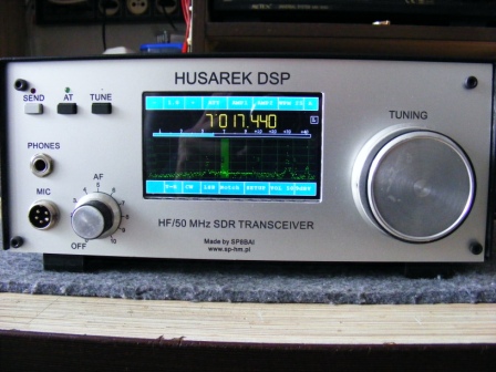 Skończyłem Husarka DSP, jest super a nawet bardziej, szczególnie na CW. Dołączam parę zdjęć mojego Husarka. Trochę dołożyłem do oryginału tj. wzmacniacz m.cz. bo łatwiej i szybciej kręci się gałką niż wciskać VOL i kręcić gałą, szczególnie podczas QSO, lub przestrajając się po paśmie. CAT działa na układzie CP201x bez problemu. Jest wyjście REMOTE do sterowania wzmacniaczem trochę większej mocy :-). Jest miejsce na autotuner pod płytką RF i dlatego na płycie czołowej są dwa przyciski AT i TUNE, czyli włączenie tunera i dostrajanie do anteny. Co prawda zima ma się ku końcowi i długie zimowe wieczory :-) ale może jeszcze zdążę przed latem :-). Obudowę wykorzystałem ze starego streamer'a IBM (taką miałem). Końcówka jest na tranzystorze LDMOS MRF186, mam średnio 50W przy zasilaniu 14V, nie jest źle :-)