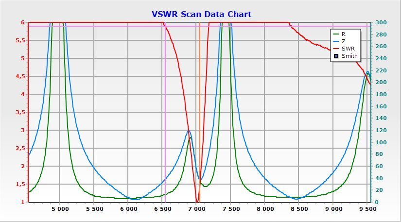 Mam problem w SARKu ustawić pełne pasmo . To znaczy na smarfonie przez bluetuth można to zrobić w miarę prosto , ale w programie przy połączeniu na USB nie bardzo mi to wychodzi . Pełne pasmo pokazuję tylko z EU1KU . Pokazany na wykresie niski SWR to jakiś błąd . Bo ta antena nie pracuje na 160m ani na 80. Na obydwu urządzeniach występuje to samo w zakresie 160m . Ponadto na niektórych pasmach SWR wychodzi poniżej pasm . Nie jest to błąd miernika tylko antena jest rozstrojona . Na przykład w paśmie 20m SWR najniższy jest na 13,500MHZ.   [