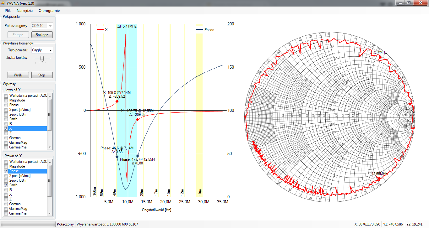 Mam też pomysł na sprytne określanie znaku reaktancji - bardziej po fazie (która jest odczytywana liniowo ze sprzęgacza), niż po impedancji (której zależność jest wykładnicza do danych ze sprzęgacza).
