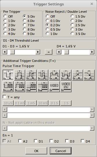 Częstotliwość próbkowania w kanale analogowym 200MHz, czułość wejściowa 0.1V/działkę