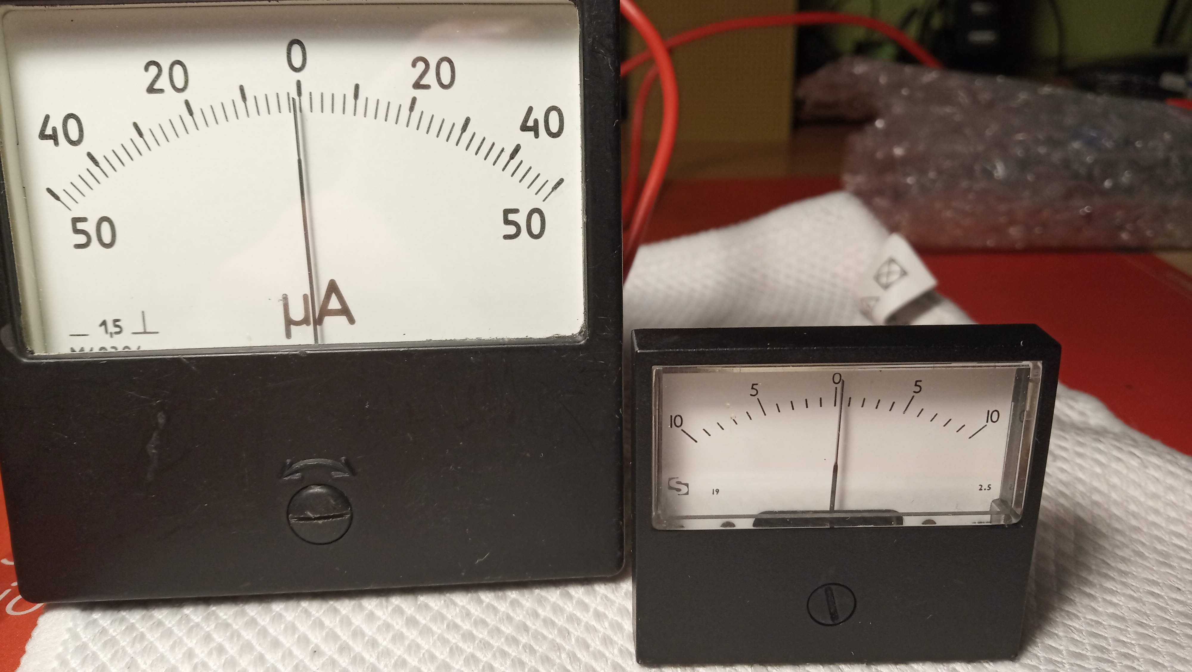 Ten wiekszy to "ruski" 50-0-50 uA zas ten mniejszy to angielski SIFAN 500-0-500 uA