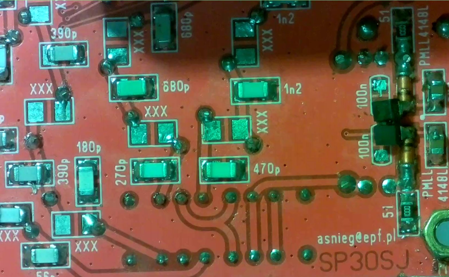 Na PCB RF, która jest w zasadzie do końca nie działająca występują miejsca jak na poniższym obrazku: