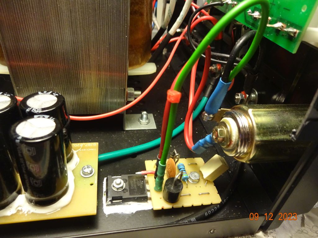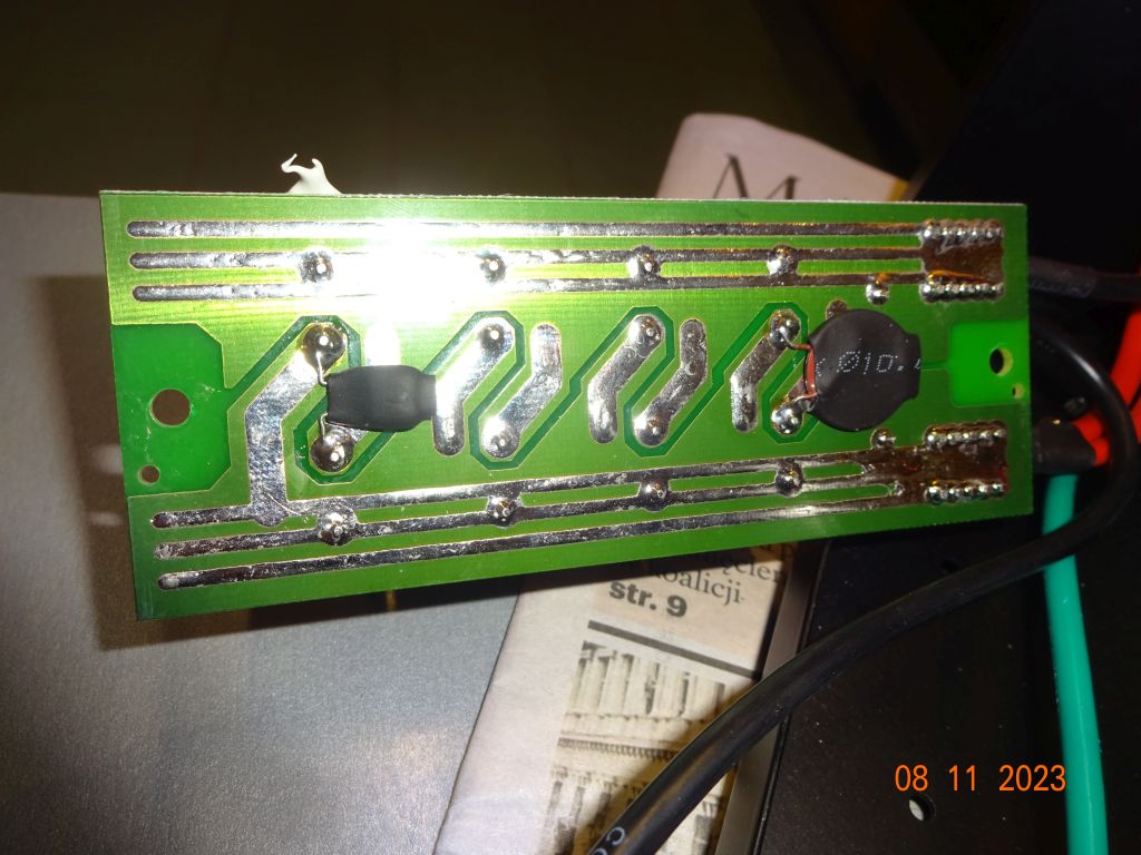 po stronie pierwotnej transformatora: wymieniłem rezystor przy zielonej diodzie LED obok wyłącznika na 75 kOm (było 150 kOm??) - dioda zaczęła świecić po włączeniu zasilacza, dolutowałem (na zasadzie, że „nie zaszkodzi”