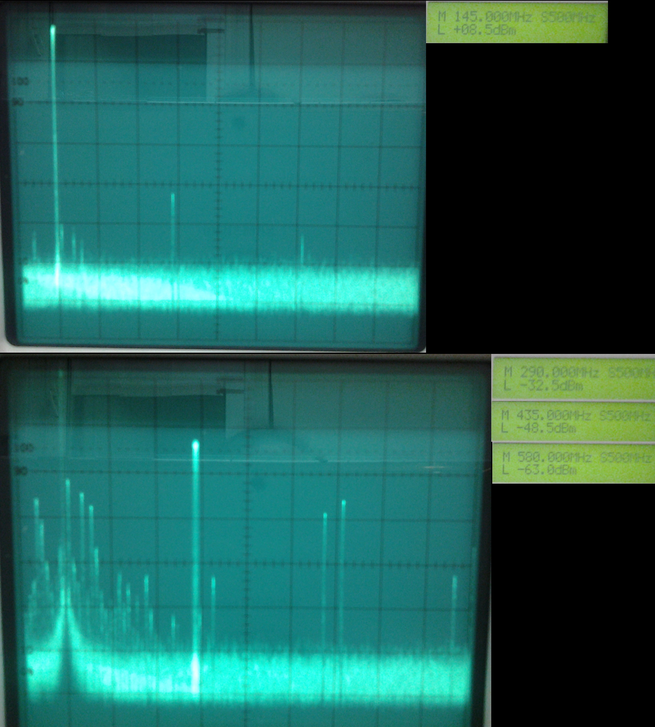 Poziom sygnalu i harmoniczne VFO: 145MHz
