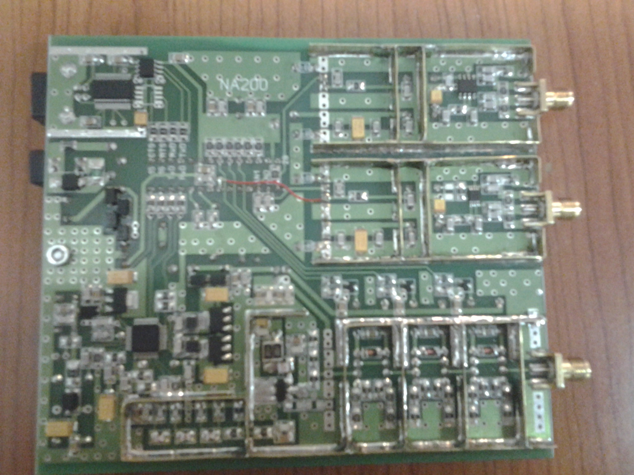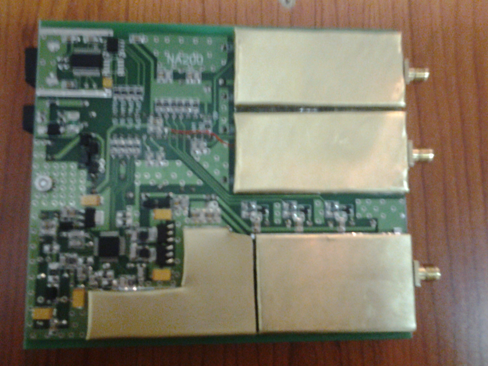 No i kolejny NA200 prawie gotowy zostalo poczekac na przesylke z AD9951 i SGA7489 z Nigeo. W paru miejscach zastosowane kondensatory 100nF C0G (spore bydlaki - dostepne w TME). W zasilaniu SGA7489 natomiast 4 x 200om - zobaczymy czy to wystarczy czy zmienic na 5 x 220om (niestety nie mialem 220 o wiekszej mocy).