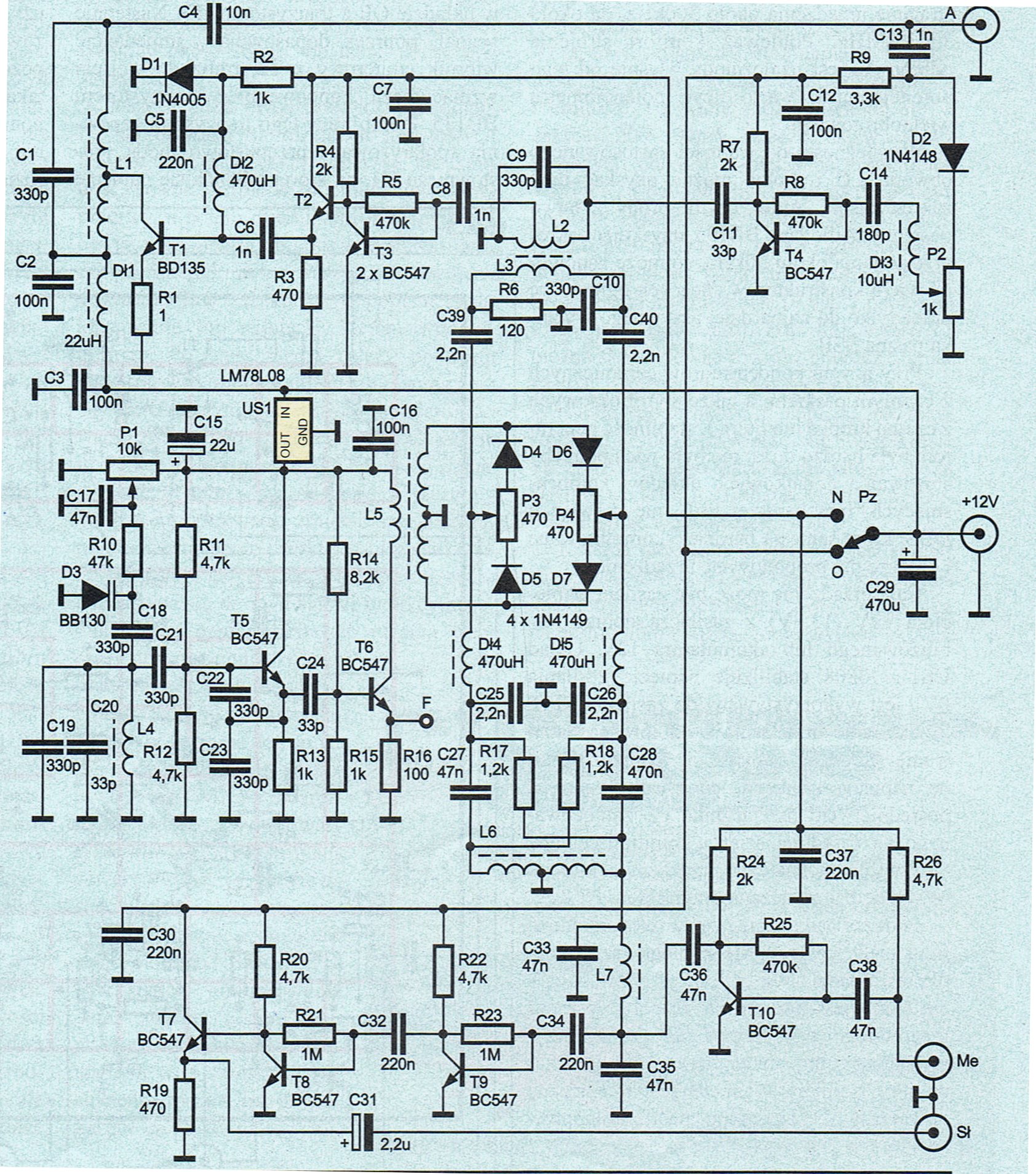 Znowu mam problem. Zacząłem uruchamiać część nadawczą. To moje pierwsze radio no i w zasadzie to nie wiem jak powinno się zachowywać, jakie sygnały gdzie powinny być. Mam nadzieje że mi tu ludzie na forum wybaczą, zrozumieją i odpowiedzą w miarę możliwości. Dla przypomnienia załączam schemat.
