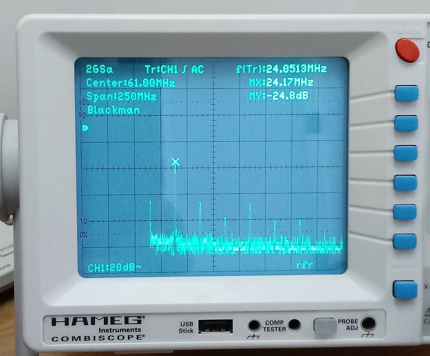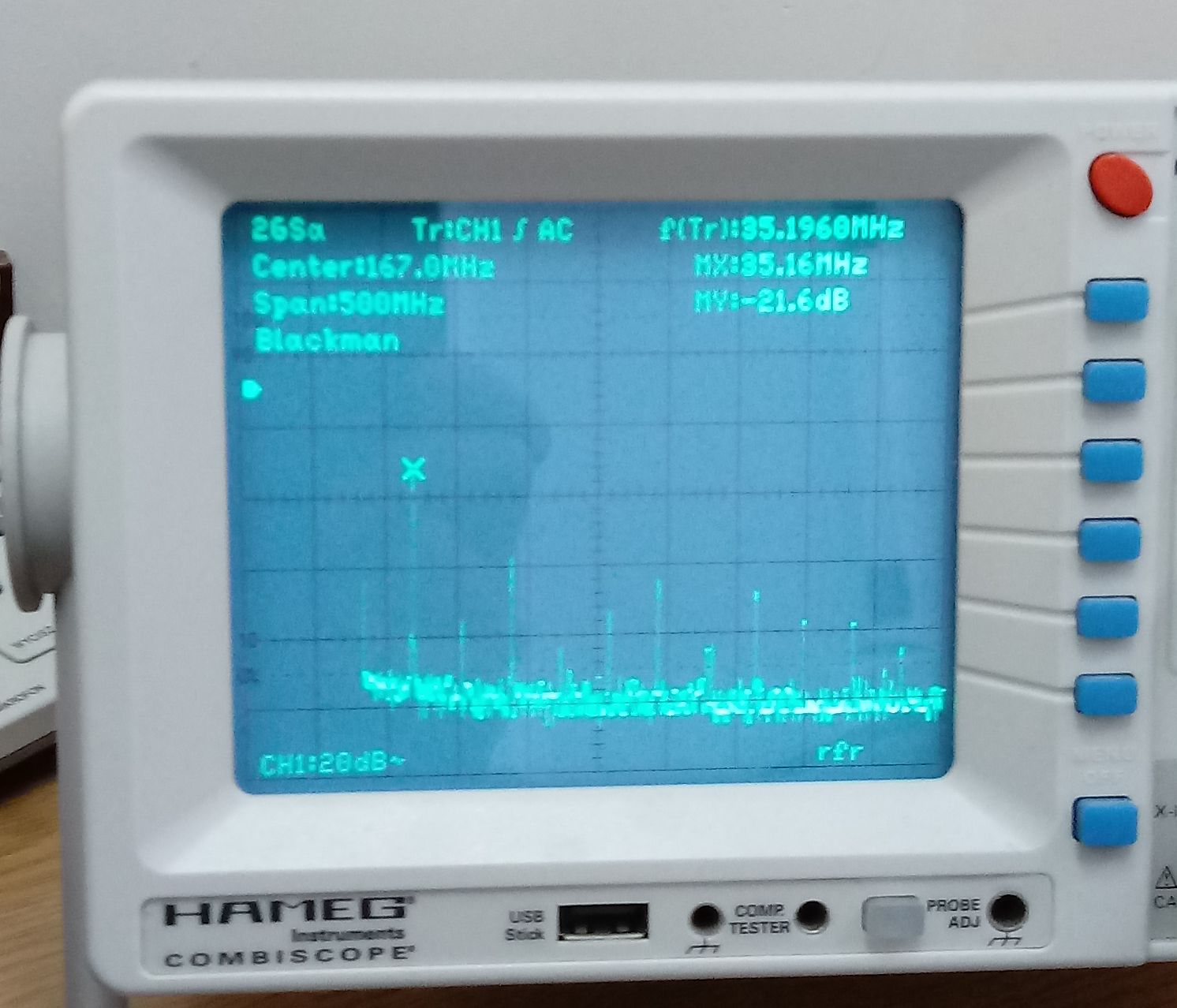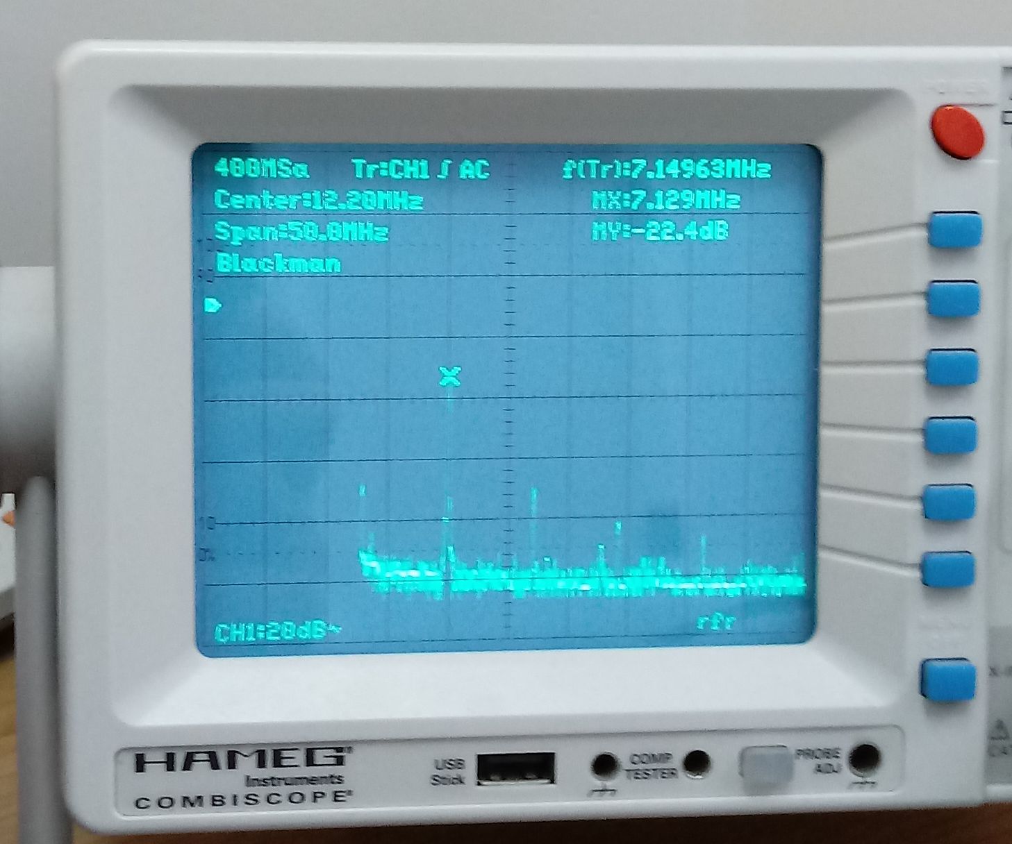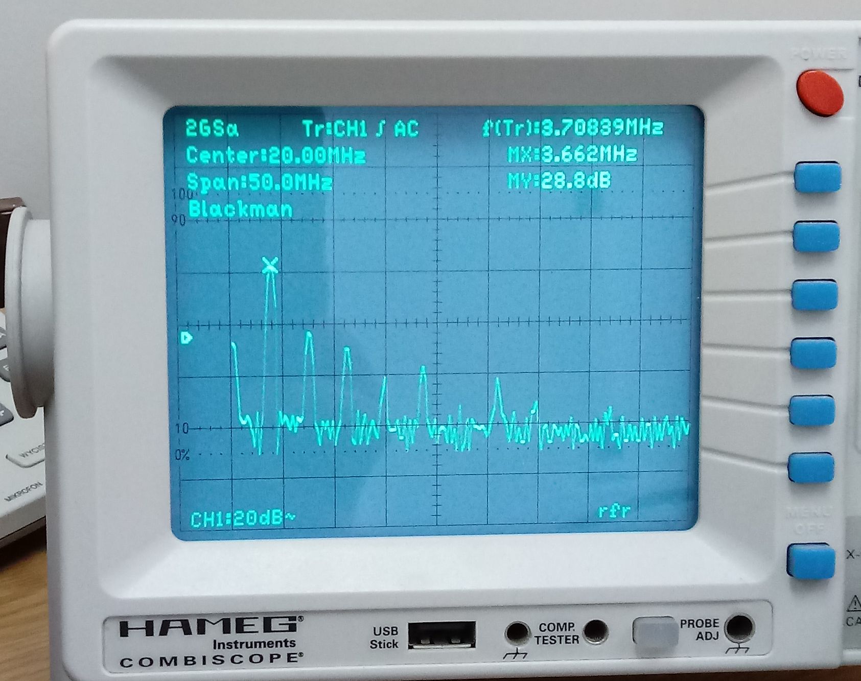 Załączam zdjęcia z szybkich pomiarów, bez opisu i z różną jakością obrazu, niestety brak czasu na to wszystko. Na zdjęciach "sinus" na wejściu i wyjściu PA, i FFT tych przebiegów.