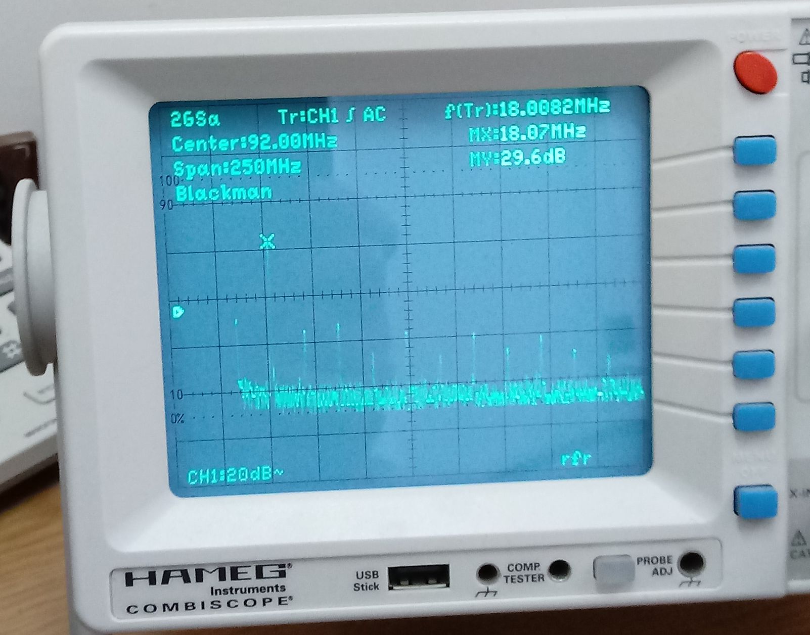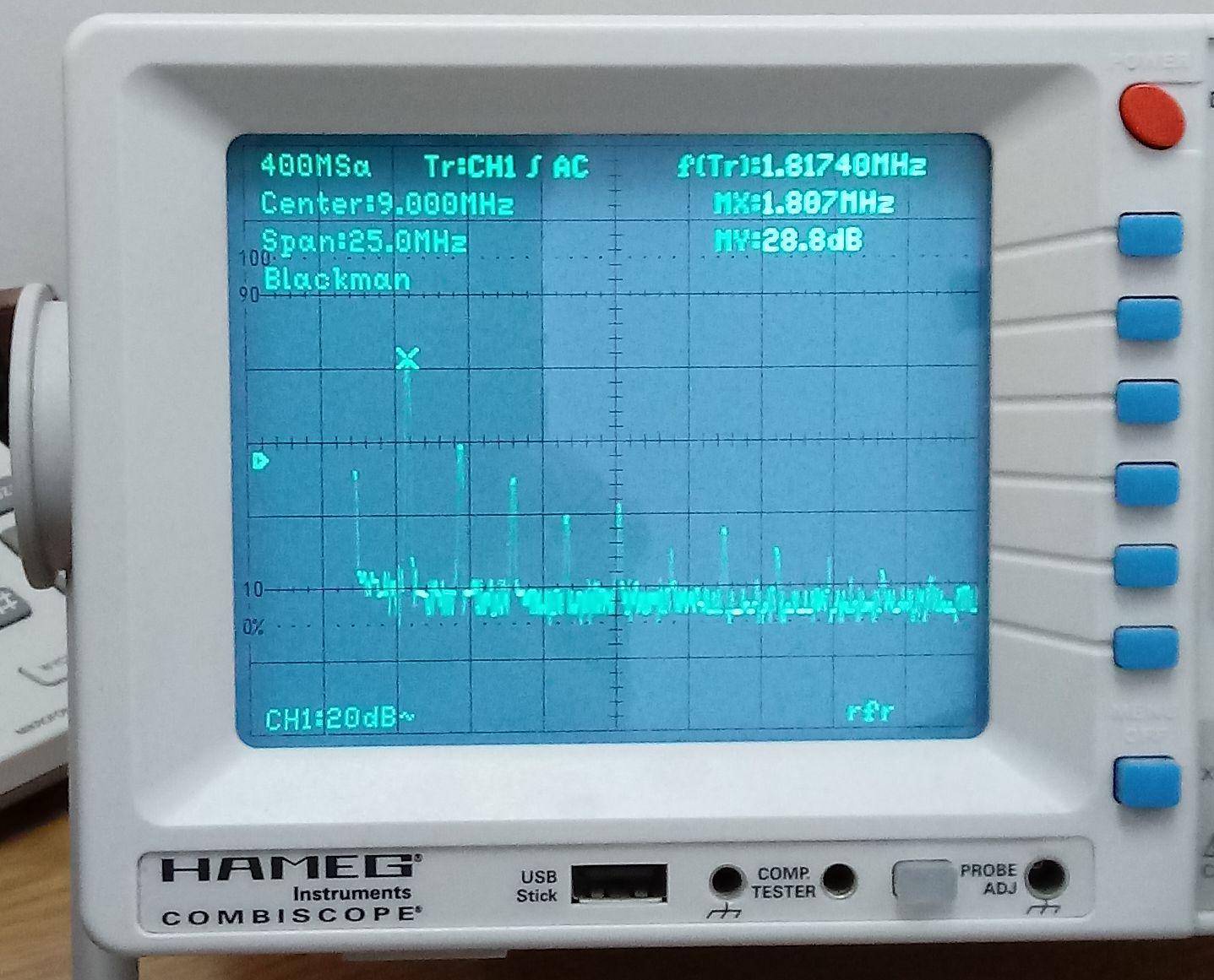Dla zainteresowanych wrzucam kilka zdjęć z budowy PA, narazie tylko dla f= 1,8MHz, jutro postaram się wrzucić pozostałe pasma. Poniższe pomiary wykonane zaraz po polutowaniu PCB i ustawieniu prądów spoczynkowych.