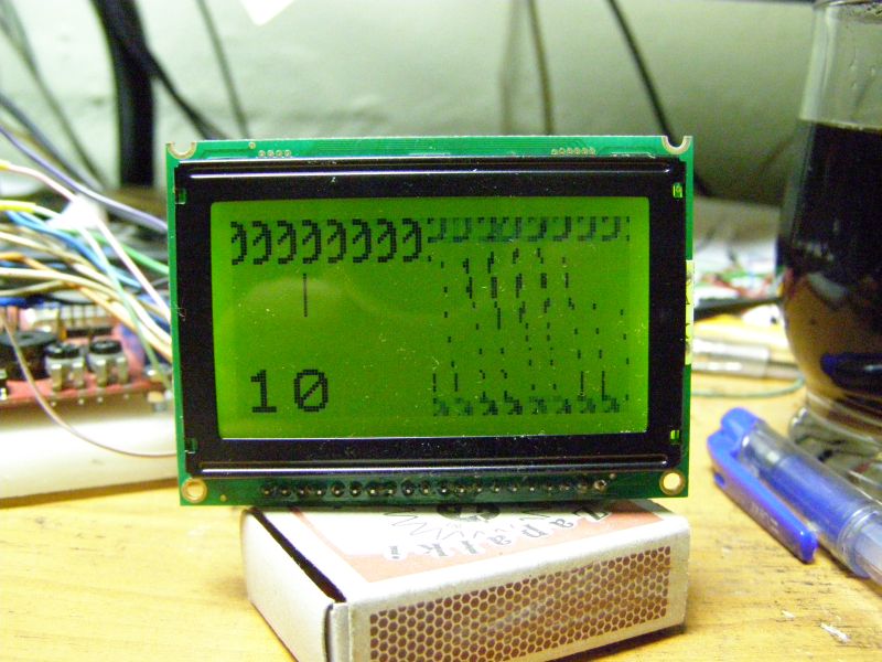Witam - w ramach zabawy z graficznym lcd 128x64 opartym o sterownik KS108 ( z MAX'a 6 ) napisałem taki programik: