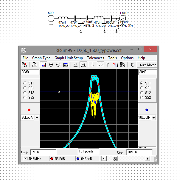 Czy ktoś byłby taki miły i to sprawdził, bo ja cieniutki w te klocki jestem? (na wykresie to jasnoniebieskie to jest sweep przy założonych tolerancjach)