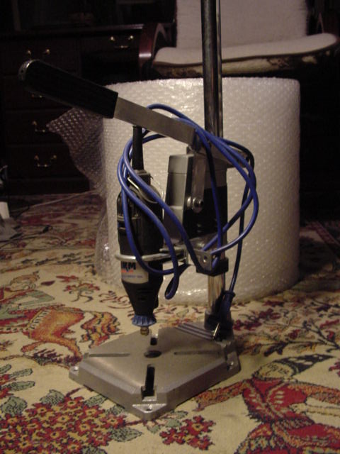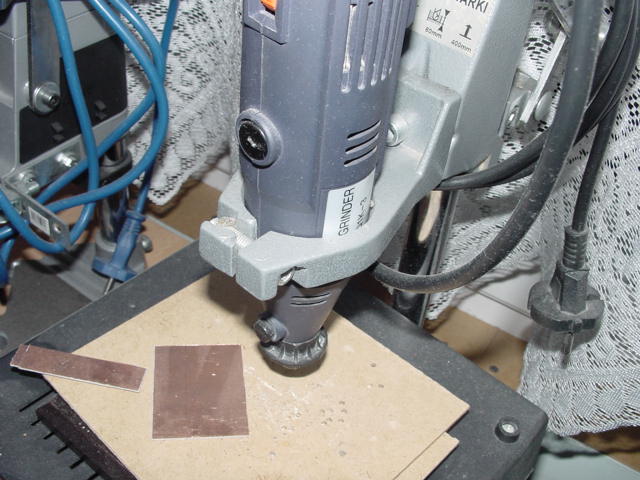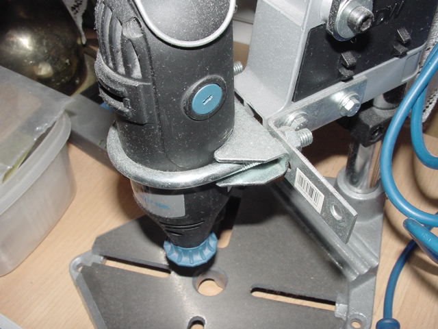 w przypadku pierwszym , odlew w miejscu mocowania wiertarki byl na tyle konkretny . ze wystarczylo przy pomocy pilnika zwiekszyc srednice otworu o okolo 2mm jak na foto ponizej: