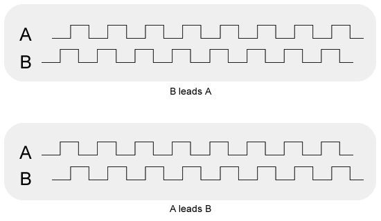 1. przy pokręcaniu osią enkodera wytwarzają się sygnały takie jak opisałem wcześniej i które są widoczne na obrazkach. Pojawiają się one oczywiście na wyprowadzeniach enkodera.