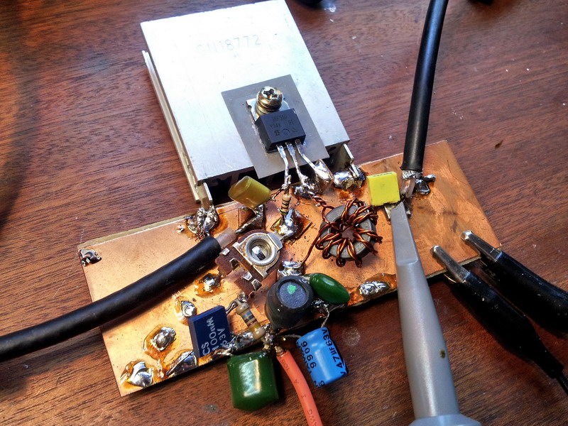 Pomiar jest robiony na bezindukcyjnym oporniku sporej mocy podłączonym zaraz za trafem na IRF poprzez kondensator 100nf tak jak na schemacie.