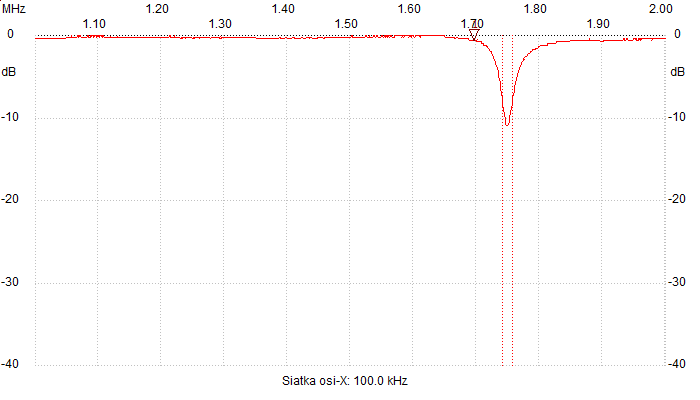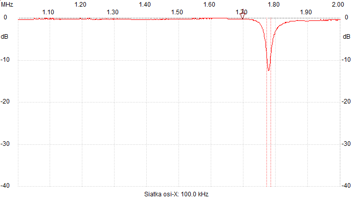 Z szerokości krzywej dipu wyszła mi wartość rezystancji strat obwodu ~80 omów. Sporo to mało powiedziane. Myślę sobie - coś jest nie tak, może jest zależne od impedancji we/wy NWT albo metodyka pomiaru zła. Zmieniając jednak po kilkadziesiąt (i więcej) % jedno i drugie nie zmienia się znacząco szerokość krzywej. Myślę sobie - w takim razie PKL jest do bani.