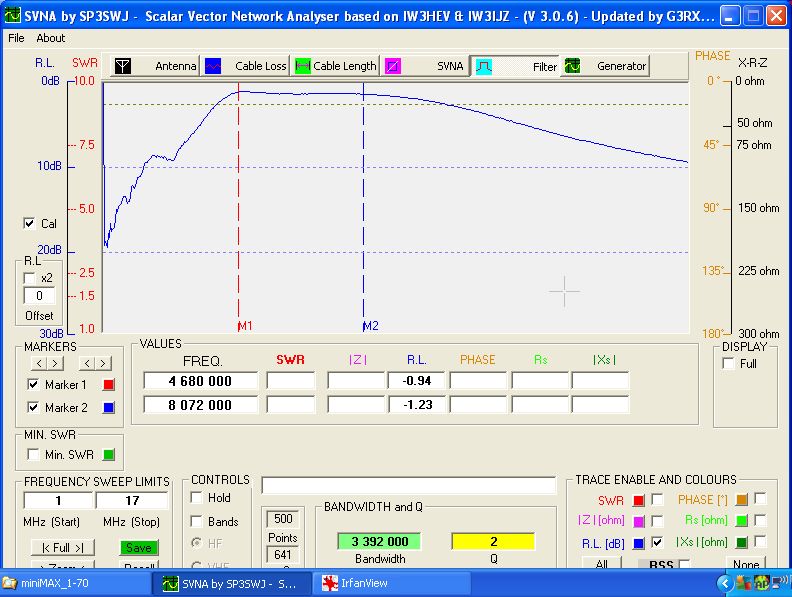 Filtr LPF na 14MHz dałem jako przykład,że można zestroić i odpowiednie pasmo przenoszenia i |Z|=49.91 i PHASE=90.62.To w tabelce można wyczytać.