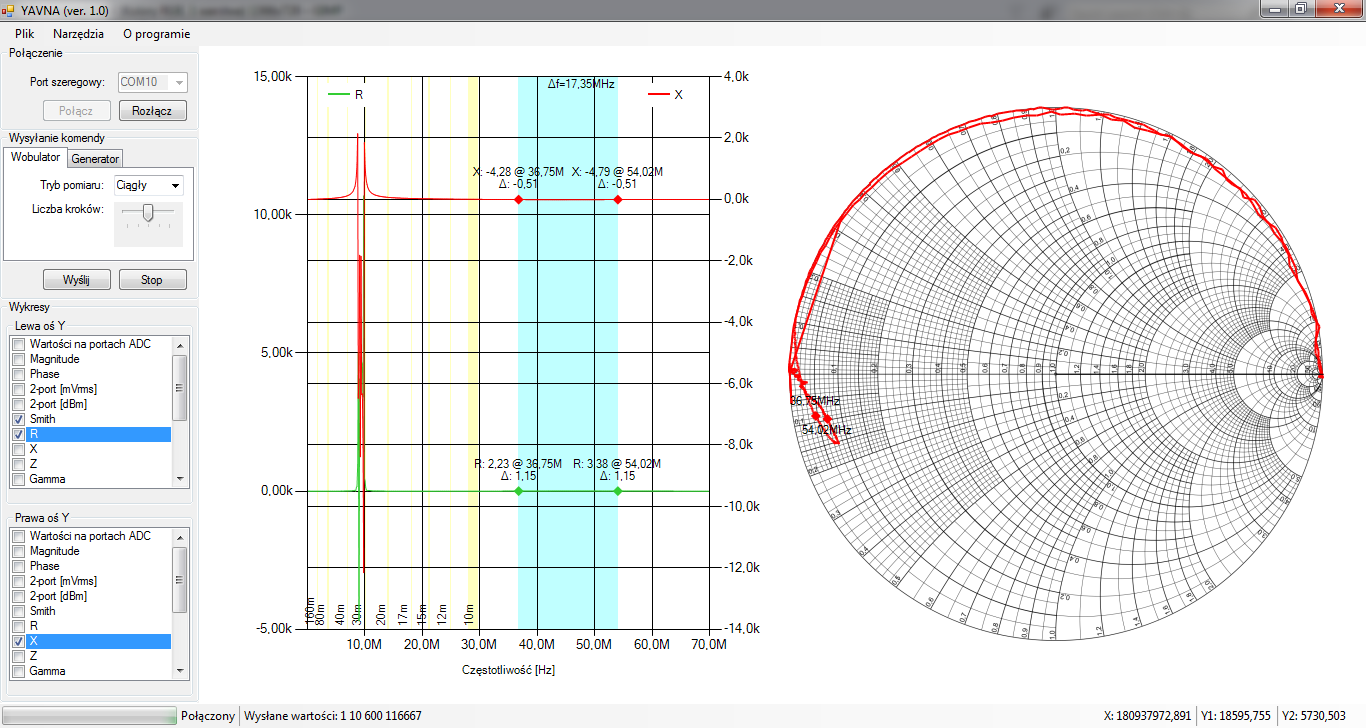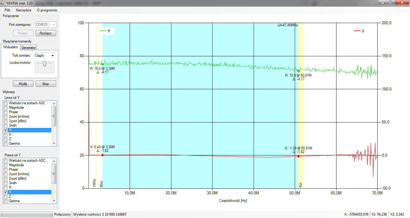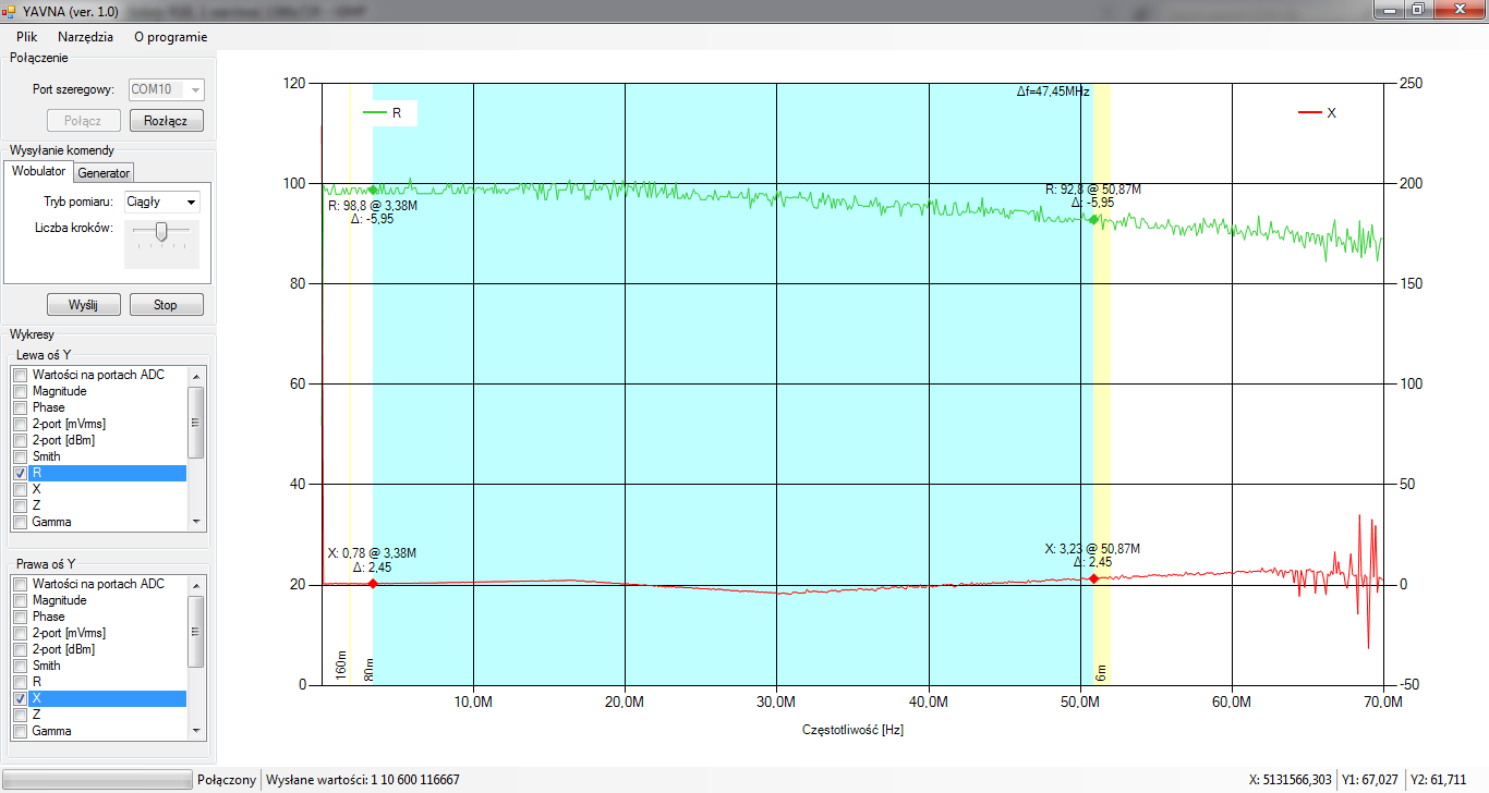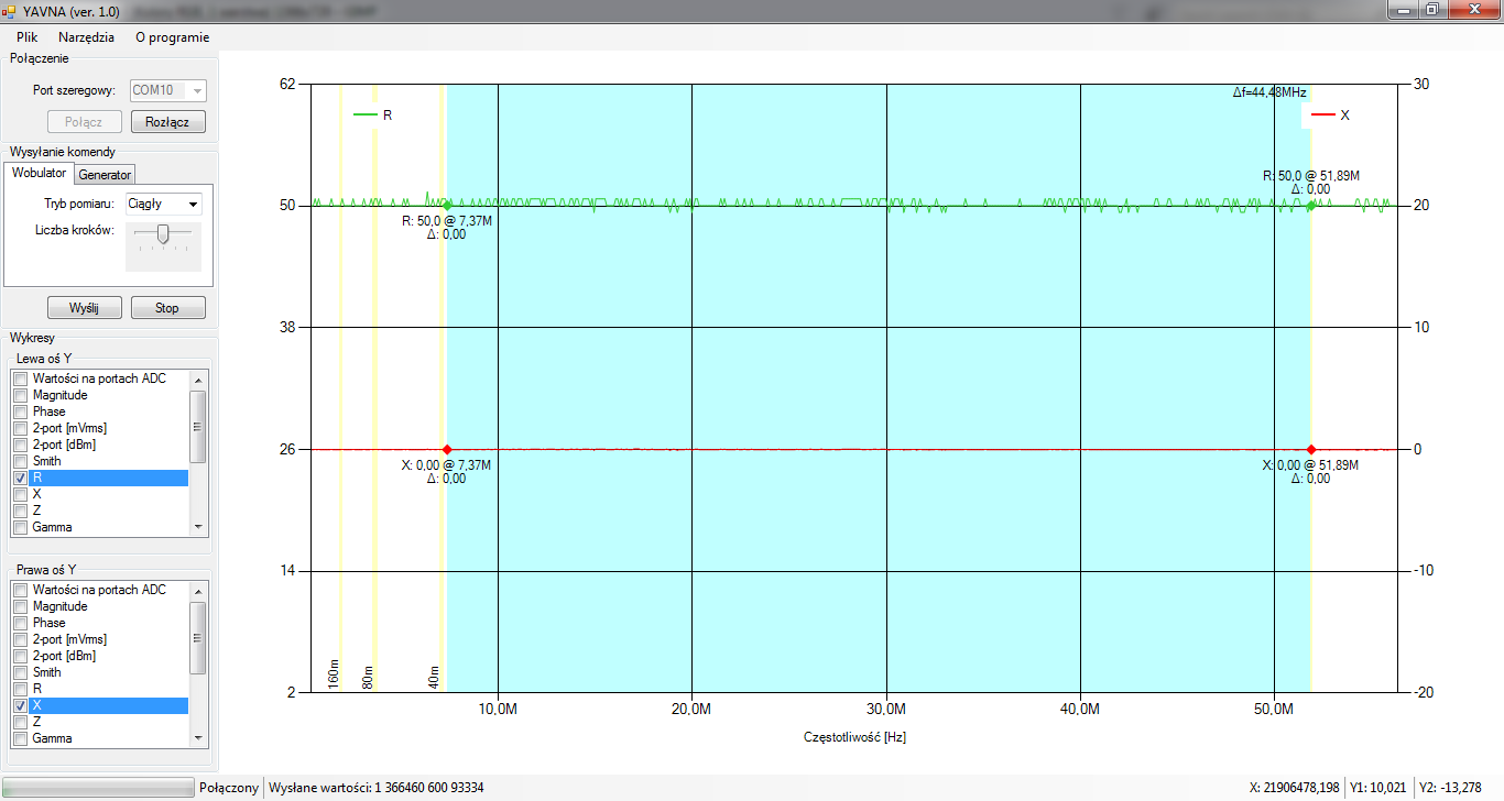 W pomiarach oczywiście korzystaj z dostępnej kalibracji i pokazuj tylko R (rezystancję) i X (reaktancję) najlepiej w podobnym zakresie 0-70MHz Smile