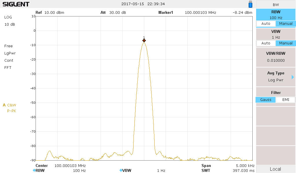 -100dBm też nie mam teraz ale zapewniam, że przy tych ustawieniach, które zastosował Przemek (mam na myśli Ref= -20dBm) będzie wyglądało bardzo podobnie jak w Rigolu, a może nawet tak samo.