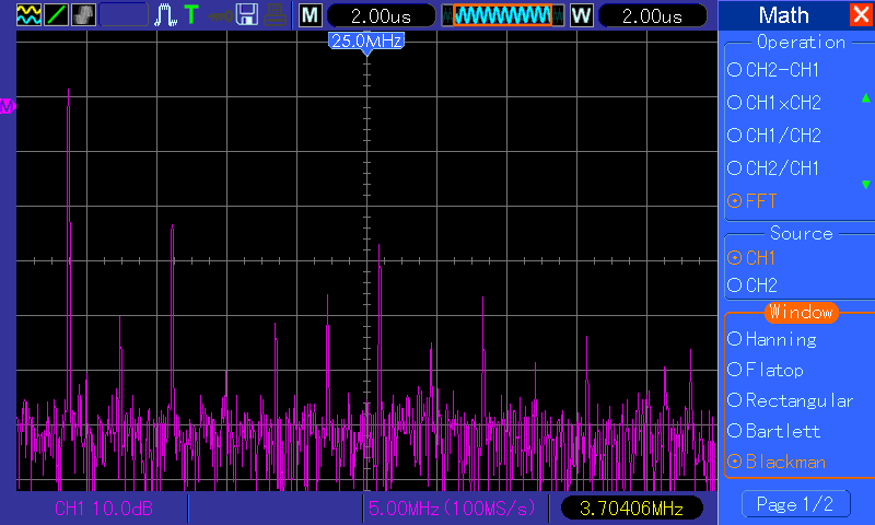FFT też po trafie przed LPF. Po lpf za mała dynamika pomiaru fft-hantek , widać tylko czysty sygnał.