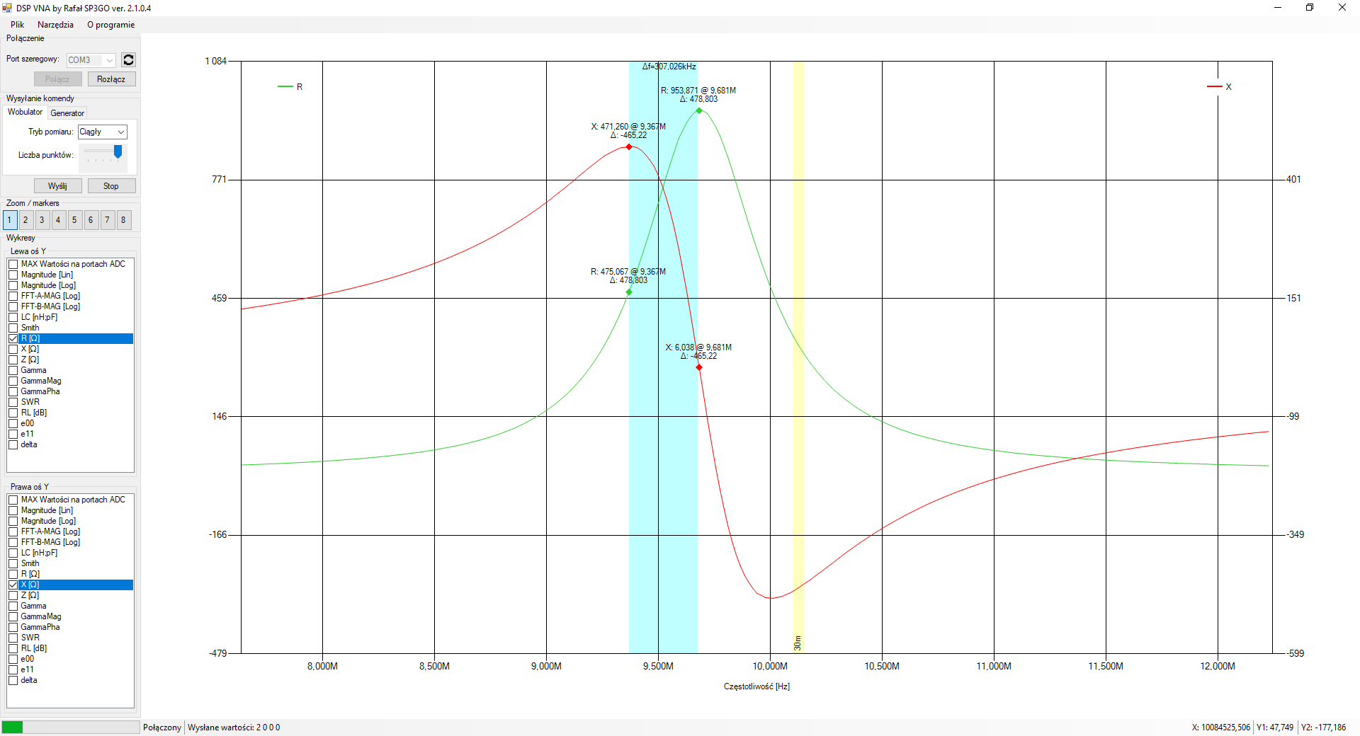 A teraz pomiary na porcie miernika (kalibracja bezpośrednio na porcie):