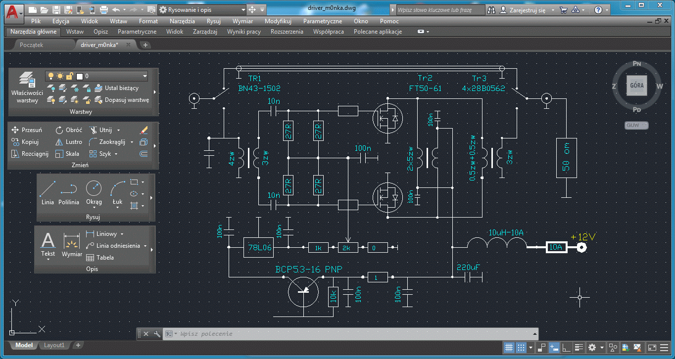 Układ wyjściowy Tr3 nieskompensowany 2x0,5zw/2zw i skompensowany