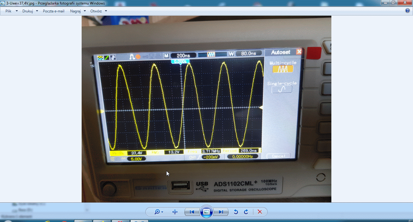 3.Uwe =37,4Vpp,4.UD=40Vpp,5.Uwy=200Vpp na 50om,