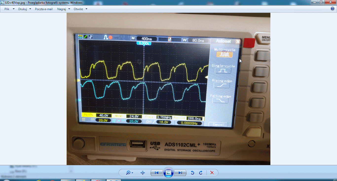Z tego wynika, że amplituda na Drenie może osiągnąć wartość około 50Vpp