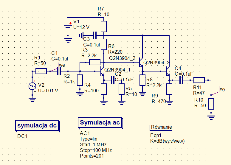 Niestety, symulacja jaką wykonałem wykazała dla tego układu wzmocnienie ok. 24dB. Usiłuję na razie dojść gdzie popełniłem błąd w symulacji więc na razie wstrzymam się z pokazaniem jej wyników. Cdn.
