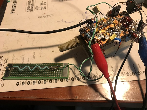 Niestety obwód rezonansowy na w.cz. w emiterze powoduje że w pewnych okolicznościach całość chce wpaść w jakieś rezonanse, zwłaszca przy słabo obciążonym wyjściu.