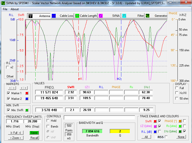 Wędka 8m, 2 sprężyny na długości 6m, dalej 1,2m przewodu miedzianego i na końcu metrowy promiennik od anteny samochodowej cb. Całość postawiona w pionie (a raczej w półpionie bo odchylona ok. 30*
