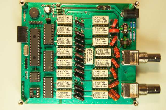 Rzecz jest bardzo prosta: kontroler na PIC16LF876A + rejestry 74HC595 i pamięć EEPROM dla nastaw; przekaźniki bistabilne; pomiar SWR (mostek Stocktona) i częstotliwości. Tryb: półautomatyczny, automatyczny i bypass + testowy (serwisowy). Opcjonalna komunikacja z PC-tem w protokole easyATU-HMG (podstawowe komendy).