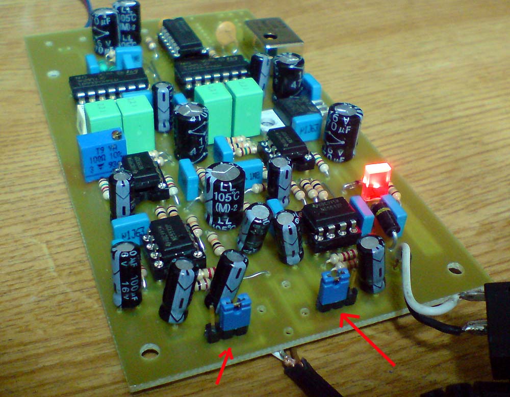 - zamiast przełącznika z reguły są montowane jumpery. Ich ustawienie, zgodnie ze schematem jest takie jak na zdjęciu 2. W tej pozycji nie używamy dodatkowego wzmacniacza.