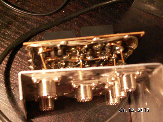 Dawno nic nie pisałem a pora na to . Przełączniki zrobione ale jeszcze nie zainstalowane , bo brakło czasu na postawienie anten .Co do błędów opisywanych wcześnie trzeba dodać , aby między ścieżkami był możliwie jak największy odstęp bo zaczęło mi już przy 80 watach rzucać łukiem elektrycznym ( a co po dopalaczu?) .Trzeba było podfrezować zrobione ścieżki pocynować dołożyć srebrzankę i po próbach nawet 1200 w nic nie szkodzi... Ważna rzecz koledzy zwracajcie uwagę czym lakierujecie ja na szybkiego wziąłem lakier do paznokci od żony i łup dobrze że radio ma zabezpieczenia bo byłoby po końcówce --- lakier był z brokatem a on prąd przewodził . Zmyłem , w samochód, do sklepu i kupiłem taki sam ale bezbarwny .Teraz jest ok . Międzyczasie zrobiłem miniaturowy przełącznik do samochodu bo na aucie ma być 5 anten a ic706mk2g ma tylko 2 wyjścia to rozwiązałem tak , że na 1 wyjściu będzie kf + 50 na przełączniku to osobna sekcja , a na ukf osobno .Całość sterowana poprzez kabel z wnętrza .Foto wkrótce .