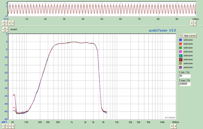 Trzeba uważać, aby nie przesterować wejścia kompresora przy pomiarach, dlatego pierwszym pomiarem, który wykonujemy obowiązkowo jest pomiar limitowania, czyli ograniczania sygnału wyjściowego pomimo wzrostu sygnału wejściowego. Wzmacniacz wejściowy kompresora ma znacznie większe wzmocnienie niż w podanym przeze mnie kompresorze FET, dla którego przedstawiłem przykładowe pomiary. Prawdopodobnie zmierzony poziom limitowania dla zaprojektowanego dla Husarka kompresora będzie wynosił gdzieś między 25 a 35mV. Trzeba to dokładnie pomierzyć. Kontrolnie można wpiąć sondę oscyloskopu na wyjście wstępnego wzmacniacza i wtedy bardzo dobrze będzie widać przy jakim poziomie sygnał wejściowy ulega zniekształceniu. Potem można zapiąć sondę pomiarową na wyjście i powtórzyć pomiar dla całości.