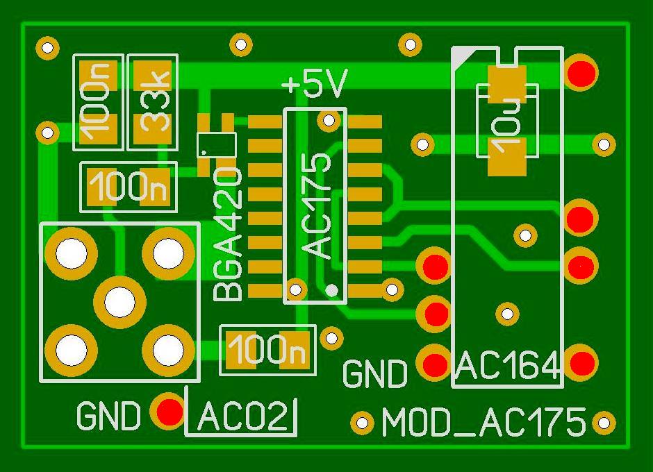 W załączniku widok dodatkowej płytki do sterowania mieszaczy Husarka poprzez układ 74AC175. Moduł pasuje do fabrycznych płytek homodyny zamiast układów 74AC164 i 74AC02. Po wyjęciu układów moduł wpinany jest w podstawki po układach.
