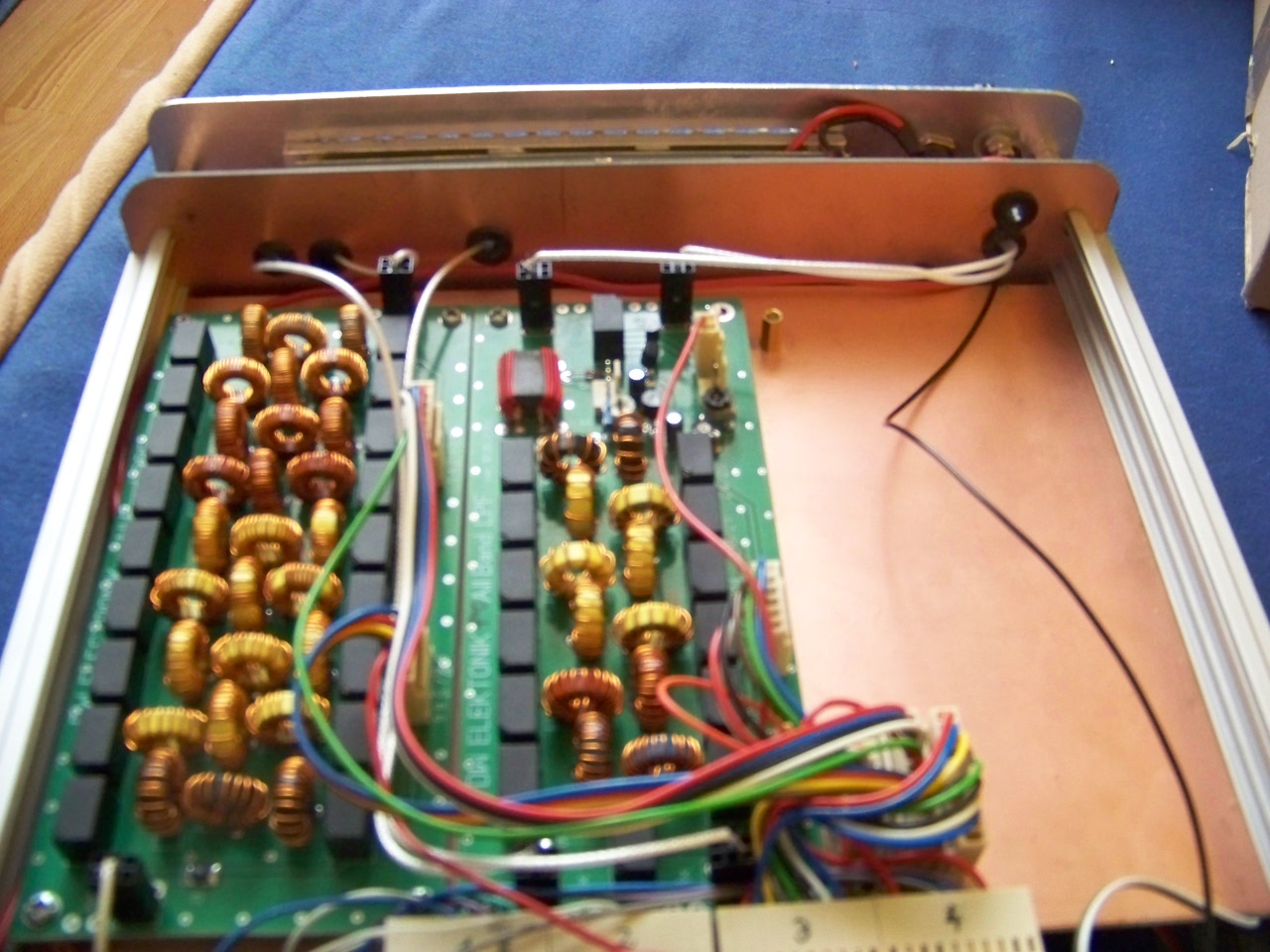 Wygląda na to, że nie ma więcej błędów na płytkach z DW-Radio. Podłączone i zestrojone BPF i LPF. W konfiguracji odbiorczej wszystko chodzi. Powoli biorę się za część nadawczą. Czekam na ładne czarne pokrętła na potencjometry. W środku zostaje sporo miejsca do zagospodarowania. W przyszłości trzeba będzie je zagospodarować - ATU lub jakiś mocniejszy stopień wyjściowy. Obwody LPF wykonane wg opracowania Janusza SP5BMP- z tego wynika inny sposób komutacji kluczami diodowymi, niż opis pasm na płytce LPF : 1,8 - 3,5 - (7+10) - (14+18) - (21+24) - 28 MHz.